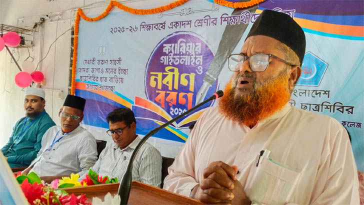 মঙ্গলবার (১৪ অক্টোবর) সকালে সরকারি খন্দকার মোশাররফ হোসেন কলেজ শাখা ছাত্র শিবিরের আয়োজনে নবীন বরণ অনুষ্ঠানে এ কথা বলেন তিনি।