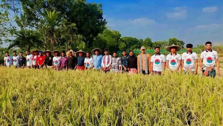 কালীগঞ্জে অসহায় বিধবা নারীর ১ বিঘা জমির ধান কেটে দিল ছাত্রদল
