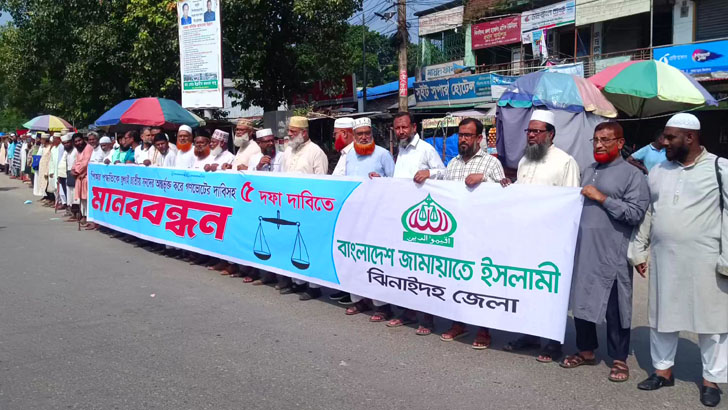 ঝিনাইদহে পিআর পদ্ধতিসহ ৫ দফা দাবিতে জামায়াতের মানববন্ধন