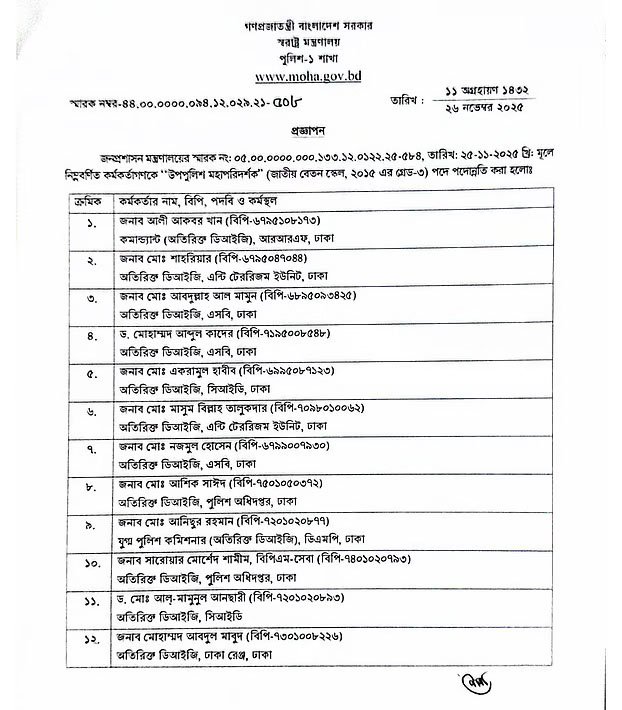 ডিআইজি হলেন ৩৩ পুলিশ কর্মকর্তা