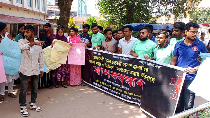 মানববন্ধনে বক্তারা বলেন, স্বেচ্ছাসেবী মেহেদী হাসান হৃদয় এর চিকিৎসায় অবহেলার কারনে মৃত্যু তার হয়েছে। এছাড়াও হাসপাতালে বিভিন্ন ধরনের অনিয়ম ও দূর্নীতিতে ছেয়ে গেছে। কর্তব্যরত চিকিৎসক ও হাসপাতাল কর্তৃপক্ষের বিরুদ্ধে তদন্ত কমিটি গঠনের দাবী জানান তারা। পরে বিক্ষুব্ধ জনতা ও আন্দোলনকারীদের উদ্দেশ্যে হাসপাতালের স্বাস্থ্য ও পরিবার পরিকল্পনা কর্মকর্তা ডা: রাশেদ আল মামুন বক্তব্য প্রদান করেন। তিনি তার বক্তব্যে বলেন, কি কারনে সাঁপে কাটা রোগীর মৃত্যু হয়েছে তা তদন্তের মাধ্যমে বের করে প্রয়োজনীয় ব্যবস্থা গ্রহন করা হবে। সেই সাথে হাসপাতালের অনিয়ম ও দূর্নীতির বিরুদ্ধে তদন্ত কমিটি গঠন করে ব্যবস্থা নিতে তিনি সিভিল সার্জন বরাবর লিখিত অভিযোগ দেয়ার পরামর্শ দেন তিনি।
