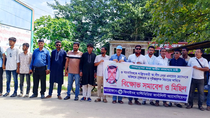 ঝিনাইদহে ৩ সাংবাদিককে লাঞ্ছিতের ঘটনায় বিচারের দাবিতে মানববন্ধন